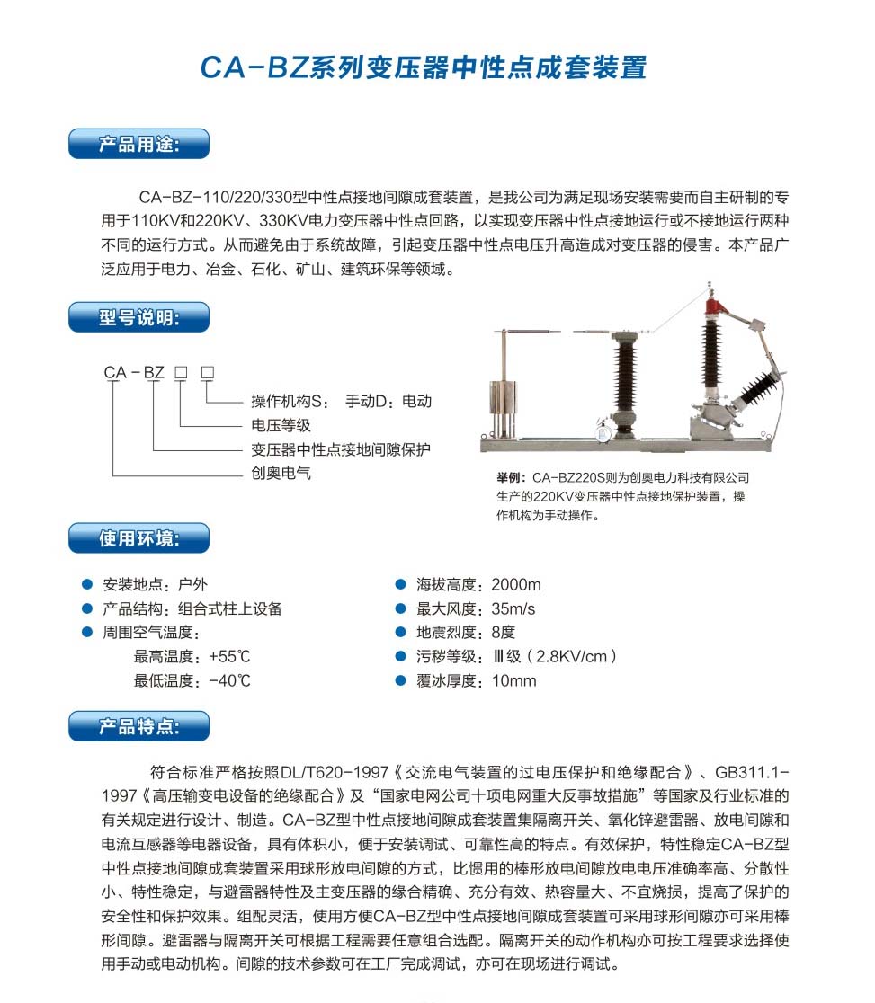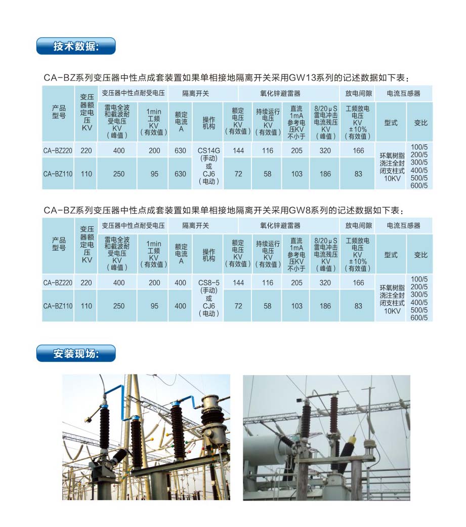 CA-BZ-110/220/330變壓器中性點成套裝置